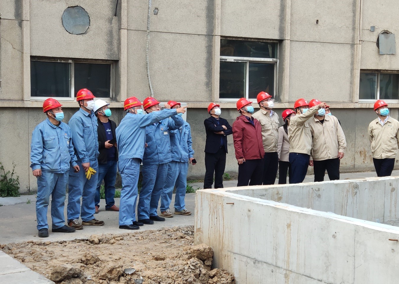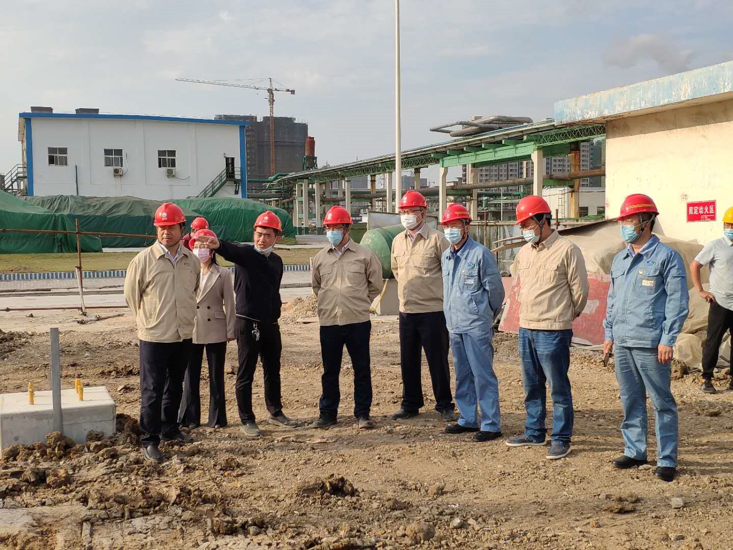 程真何一行人員在堿業(yè)公司董事長(cháng)張衛民的帶領(lǐng)下實(shí)地考察了外電網(wǎng)系統供電增容改造施工狀況,并就施工質(zhì)量和進(jìn)度提出了意見(jiàn)和建議。