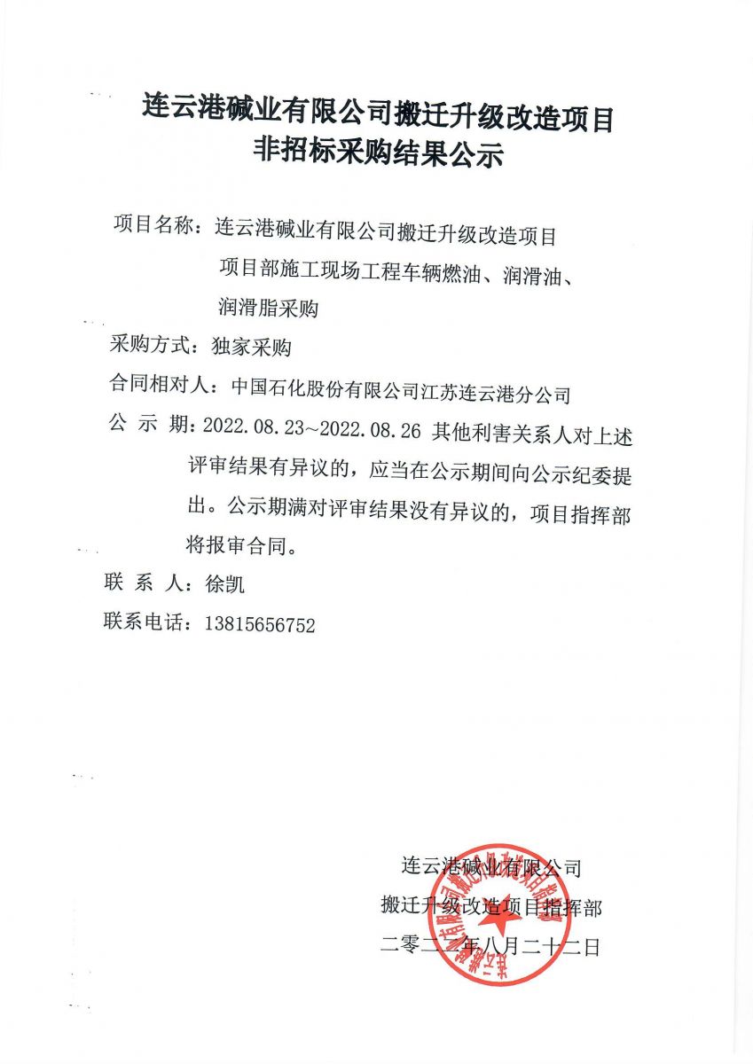 搬遷升級改造項目施工現場(chǎng)工程車(chē)輛燃油、潤滑油、潤滑脂采購結果公示