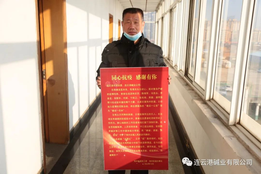 11月份疫情期間,根據市里統一安排,公司組織抗疫志愿者服務(wù)隊,全身心投入海州區疫情防控一線(xiàn)。公司職工林慶芝、陳瑞軍、馮茂永、李金龍、張新豐、劉斌、卞保衛、張名琦、高健、潘德強等10名職工積極響應公司黨委的號召,投入到社區志愿者服務(wù)行列,沖鋒在抗疫最前沿,為疫情防控作出了突出貢獻。近日,海州街道黨工委、海州街道辦事處送來(lái)了感謝信以及錦旗。