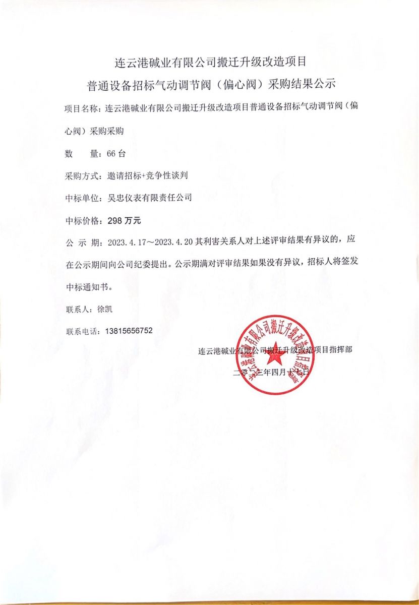 氣動(dòng)調節閥(偏心閥)采購結果公示