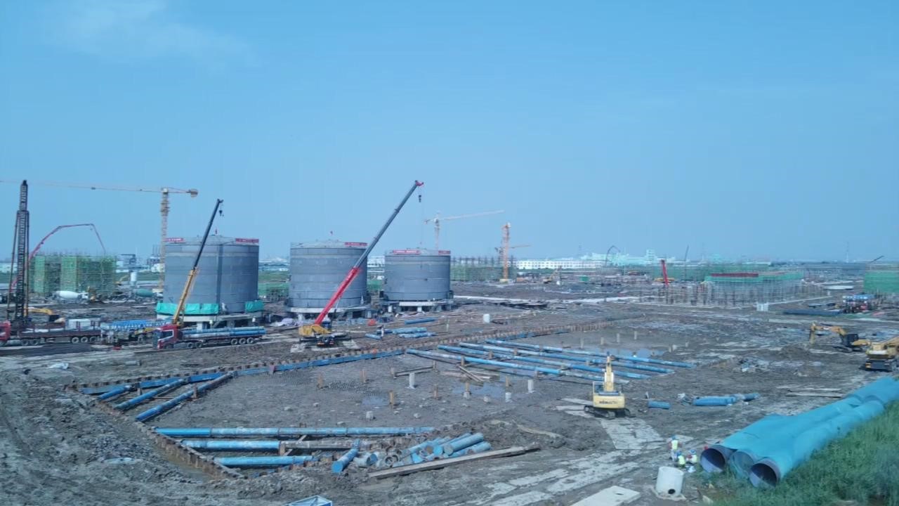 ⑴聯(lián)堿一標段101b聯(lián)堿辦公樓屋面女兒墻拆模養護;152中心控制室屋面鋼結構進(jìn)場(chǎng),砌體施工;151化驗中心四層支撐架搭設;340機電儀維修廠(chǎng)房鋼結構工廠(chǎng)預制,砌體施工;510重堿車(chē)間V51301A設備中心筒與溢流箱合攏,氨II澄清桶安裝,母液I澄清桶安裝.管廊基礎防腐回填;532重灰段深基坑回填、水池養護;280b換熱站屋面鋼結構工廠(chǎng)預制。