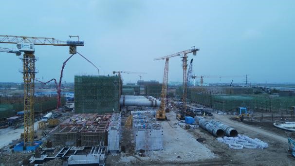 ⑸合成氨二標段271原料煤儲運破碎樓三層澆筑;#1轉運站五層腳手架搭設,鋼筋綁扎;#2轉運站三層腳手架、模板拆除,四層腳手架搭設,鋼筋綁扎,支模;汽車(chē)卸煤區,煤筒倉外側土方土方挖取,圍檁安裝;820合成氨循環(huán)水站清凈廢水池鋼板樁拔除;塔下水池1支撐架搭設,鋼筋綁扎;塔下水池2支撐架搭設,對拉螺栓割除;吸水池1基坑開(kāi)挖準備;711煤漿制備二層腳手架搭設,梁板柱支模,鋼筋綁扎,埋件安裝;762壓縮機廠(chǎng)房基礎短柱防腐;剩余設備基礎鋼筋綁扎,模板支設;763空分后備系統上部結構鋼筋綁扎,預埋件安裝,支模;764儀表空壓站基礎墻防腐;831空分變電所首層結構鋼筋綁扎,埋件安裝,支模;761冷箱基礎冷箱設備帶板拼接施工;膨脹機房上部結構鋼筋綁扎預埋螺栓安裝;712氣化框架立柱腳手架搭設,鋼筋綁扎;灌注樁施工;樁基大小應變檢測;基坑開(kāi)挖準備;塔吊附近承臺基坑回填;842空分機柜間板墻鋼筋綁扎;713渣水處理集渣池支撐架搭設,鋼筋綁扎,支模;設備基礎錨固鋼筋焊接。