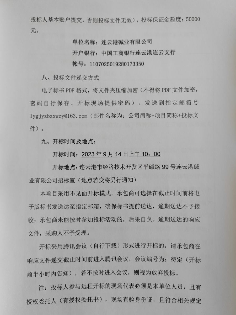 連云港堿業(yè)有限公司搬遷升級改造項目第二期固化土工程招標公告