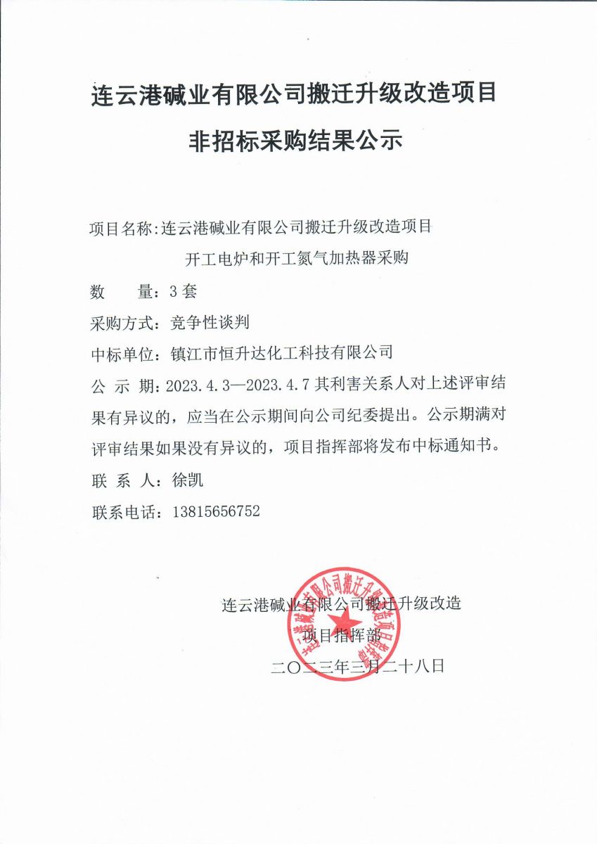 開(kāi)工電爐和開(kāi)工氮氣加熱器非招標采購結果公示