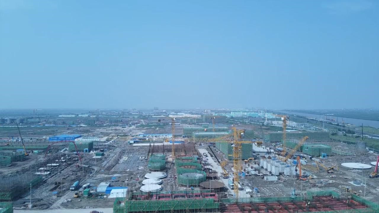 ⑴聯(lián)堿一標段101b聯(lián)堿辦公樓屋面女兒墻拆模養護;152中心控制室屋面鋼結構進(jìn)場(chǎng),砌體施工;151化驗中心四層支撐架搭設;340機電儀維修廠(chǎng)房鋼結構工廠(chǎng)預制,砌體施工;510重堿車(chē)間V51301A設備中心筒與溢流箱合攏,氨II澄清桶安裝,母液I澄清桶安裝.管廊基礎防腐回填;532重灰段深基坑回填、水池養護;280b換熱站屋面鋼結構工廠(chǎng)預制。