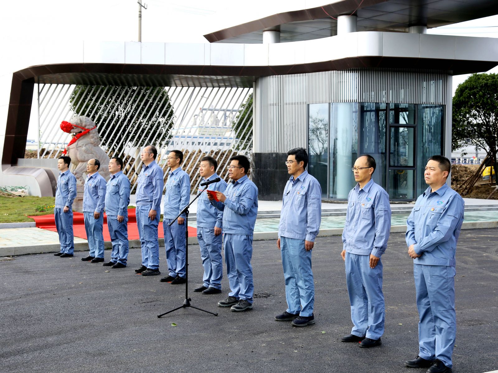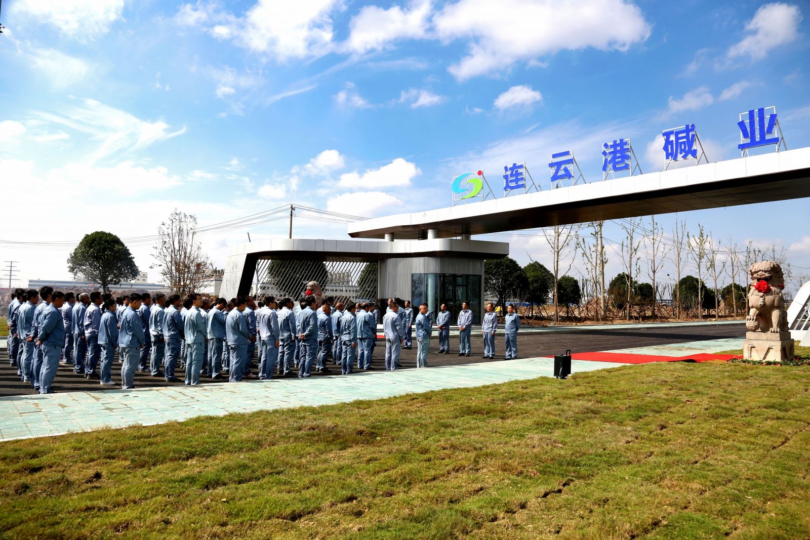儀式上,姜自成、延立強為廠(chǎng)前區石獅揭幕。據悉,這一對石獅與老堿廠(chǎng)風(fēng)雨兼程近三十年,見(jiàn)證了老堿廠(chǎng)的興起、輝煌和衰落,是堿業(yè)公司歷史傳承的一分子,是堿業(yè)公司企業(yè)文化的一分子,是全體堿業(yè)人深刻記憶的一分子。如今,這對石獅落成在全新的堿業(yè)公司,必然成為堿業(yè)公司新發(fā)展的守護者,必然成為堿業(yè)公司新篇章的見(jiàn)證者,必然成為全體堿業(yè)人新精神的守望者。它們時(shí)刻提醒著(zhù)我們不忘初心、銘記歷史,同時(shí)也鼓舞著(zhù)我們勇往直前、開(kāi)拓創(chuàng )新。