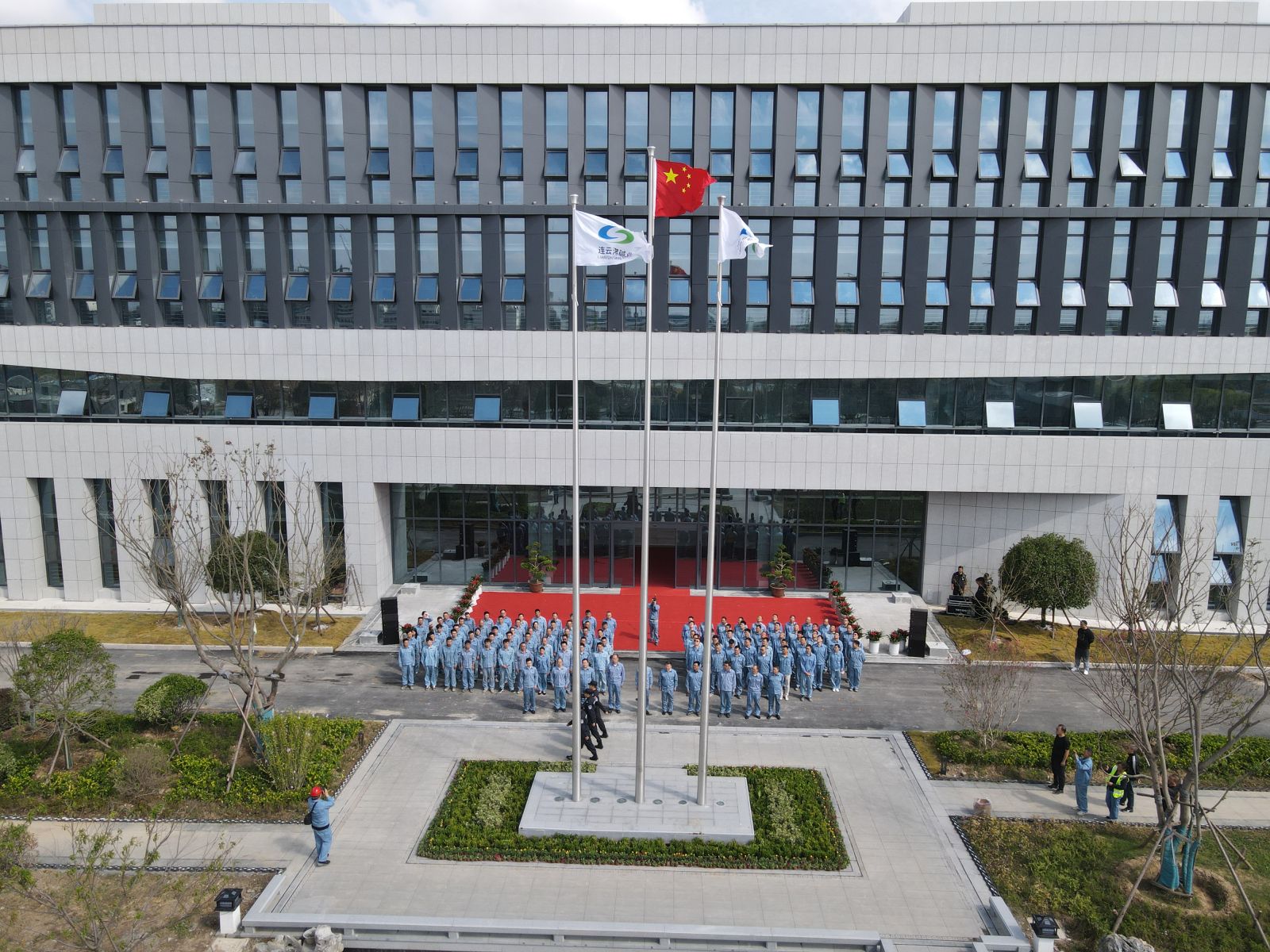 儀式伊始,公司在綜合樓前舉行莊嚴肅穆的升旗儀式,3名護旗手邁著(zhù)鏗鏘有力的步伐,莊重地將國旗護送至升旗臺。伴隨著(zhù)雄壯的《義勇軍進(jìn)行曲》,五星紅旗冉冉升起。